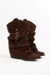 Descubrí las botas JULYA, confeccionadas en cuero vacuno de alta calidad que garantiza durabilidad y un look sofisticado. Su diseño presenta una caña volcada con un detalle especial de flecos, aportando un toque distintivo y moderno que realza cualquier outfit.